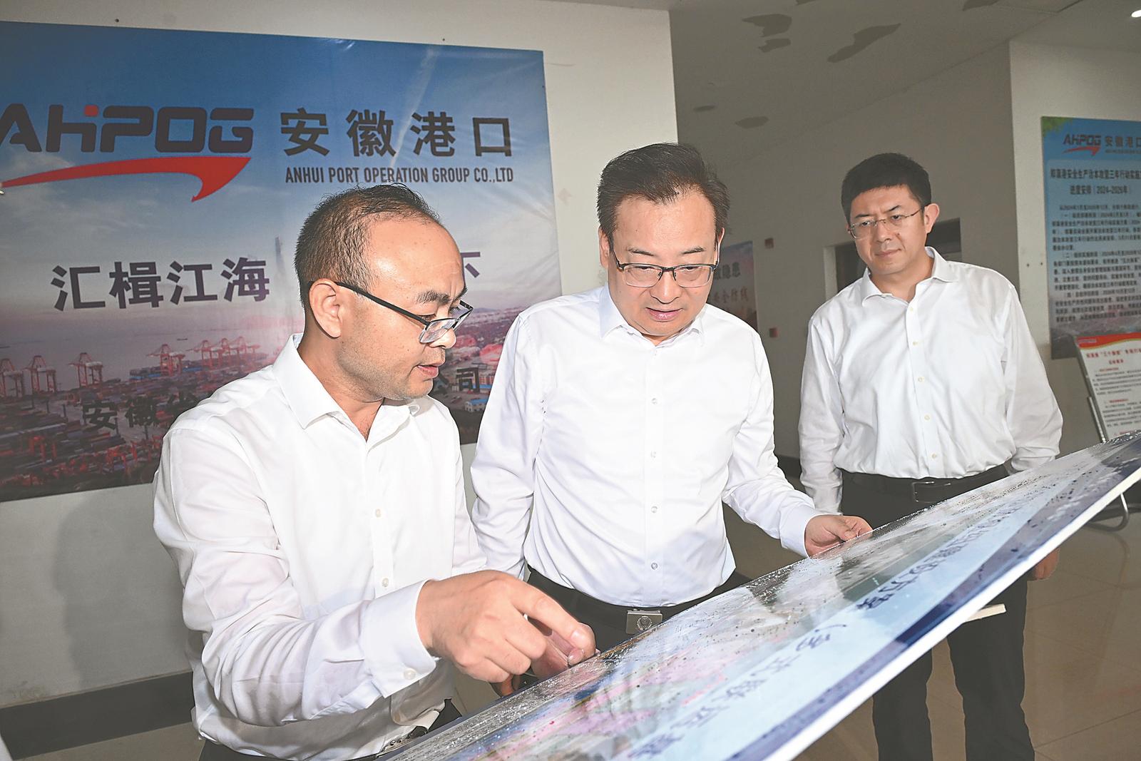 八月十一日,省委书记梁言顺深入马鞍山市郑蒲港港区,详细了解港口规划建设运营情况。记者 杨竹 许昊 摄