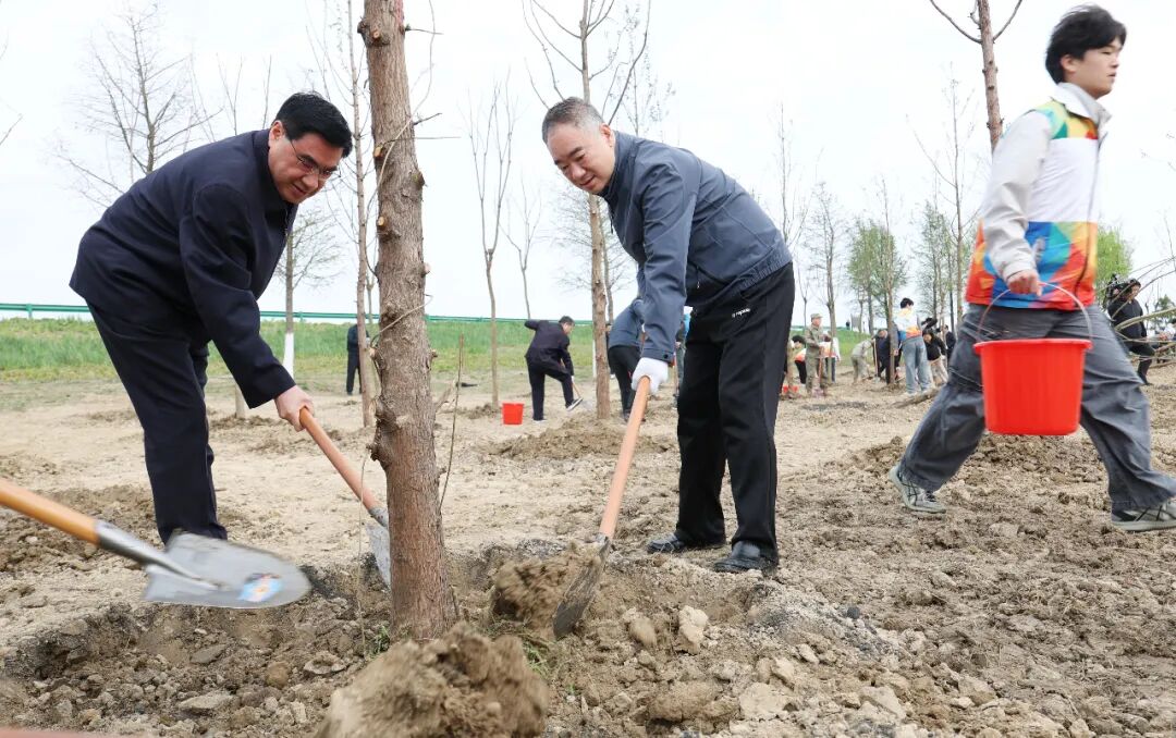 随后,梁言顺、王清宪、张西明等省领导走向植树区域,与干部群众一起挥锹铲土、扶正苗木、培土围堰、提水浇灌,合力栽种乌桕、水杉、湿地松等树苗。经过一番劳动,新种下的一株株苗木挺立舒展、错落有致,在春光里焕发出勃勃生机。植树间隙,梁言顺强调,植树造林是一项功在当代、利在千秋的崇高事业,要咬定青山不放松、一代接着一代干,统筹利用绿色空间,科学选种适生树种,强化造林质量监管,加大苗木管护力度,因地制宜做好增绿文章。要结合农村人居环境整治大力推动村庄绿化美化,加快建设一批城市社区公园、街头游园和“口袋公园”,让城乡居民有更多的绿色获得感。要创新工作机制,加强宣传教育,科学、节俭、务实组织开展义务植树活动,激发全社会参与造林绿化的积极性和主动性。